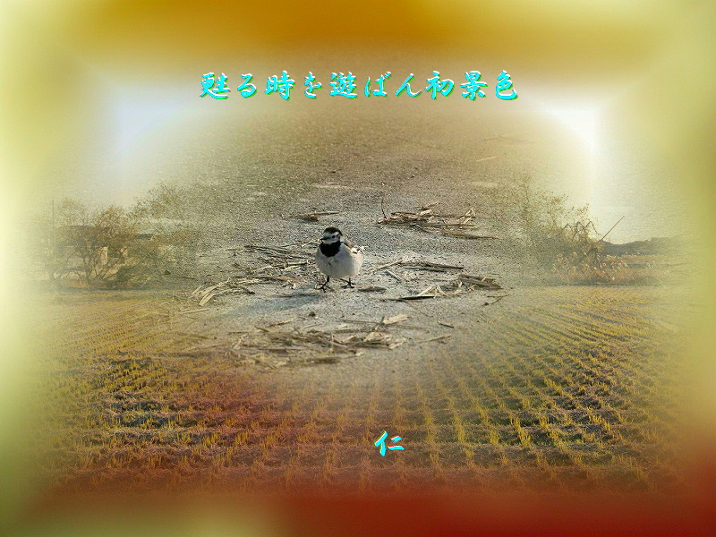 ★ 言葉あそび575交心v13z010802 ――☆★☆―――――――――――――――☆★☆―― 甦る時を遊ばん初景色 ――☆★☆―――――――――――――――☆★☆―― 舞はずっと無能不器用な凡愚老仁には憧憬の的でした。 虚弱児童だった凡愚老仁は体を使うことがほとんどなかったんです。ばあちゃんに負んぶされて、ひ弱に生きていました。ひ弱はいじめの対象でもあったのですけれど・・・スポーツが全然できないのもいじめの対象でした。頭ばっかり大きくて、痩せ細っていましたので、体形でもいじめられます。音楽も素養がなくて、歌も楽器も下手のまんまでした。何一つ特技のようなものがなかったんです。けれど、なぜか、小学校4年生くらいから悪童ナンバーワンが友だちになってくれていじめから守られました。中学校は越境入学したのでその友人と離れてしまいましたけれど、凡愚老仁の中学校まで出向いて、守ってくれました。中学校間の勢力抗争は激しかったんですよ。・・・ ついに音楽も舞も無縁の青春時代を過ごしてきたのでした。 手も足も体も動かさない習性が身についてしまいました。そして立志に懶くの落ち零れ人生を選んで、それでもほどほどには生き延びてきたようです。 振り返れば、ただ風が吹いているばかり・・・のネアンの旅をやり過ごしてきた空虚な半生も終わりに近く、けれど、何故か、今さらに、憧憬が湧き出してきて、音楽に憧れ、舞に憬れ、絵も描きたくなり、575も詠みたくなって、あれこれあれこれ好奇心全開になっています。失われた時へ時空移動しはじめたようです。 好奇心が漢字のはじまりに巡り遇って、自然の不思議に素直に感動を覚えはじめました。手や足の絶妙さにも感動します。手足を使ってのやり直しができるものなら・・・ 甦る時を遊ばん初景色 仁 まずは身辺り無心に歩く いま、こころは、少年時に戻っています。 指が短くてギターが弾けなかった。息が小さくてハーモニカが吹けなかった。こころは少年に戻って、笛を吹きたがっているんです。心は少年に戻って、山に登りたがっているんです。心は少年に戻って、詩を詩いたがっているんです。・・・ 無心になったら、ハーモニカも吹けたでしょうに。夢中になったら、泳ぐこともできたでしょうに・・・ 若いということは、無心になって、一心不乱に、夢中になれることだったのでしょうね・・・ 夢中になって傾ぶいたら、小唄も唄えたでしょうに。舞も舞えたでしょうに・・・ こころは、いま、少年に戻って、無心に小唄を真似して唄っています。 こころは、いま、少年に戻って、夢中に舞を真似して舞っています。 こころは、いま、少年に戻って、真似する言葉を遊んでいます。 言葉が、真似する世界の道標なんです。 初歩きあとり落ち豆群れて食む 仁 吾が見えずか無害と知るか 夢中に食むも無心に歩くも我を忘れている姿なのかもしれません。お互いに我を忘れているので、我の姿は見えず、命の相で共振、交感しているのかもしれません。命の共振交感の閾は、もう、カミの閾なのでしょう・・・ 「若」は「艸冠」と「右」でできていますが、元の象形は「艸」で、これは巫女が長髪をなびかせ、両手をあげて舞ながら神に祈り、神託を求めている形です。「艸」をよく見ていると、だんだん両手を振りかざして恍惚と舞っている若い媚女に観えてきます。 見るは視覚で見ること。観るは心眼で観ることです。 言葉遊びは心眼で観る遊びですから、観自在の面白さも、自遊さも楽しめるんです。 ついでながら、「観自在菩薩」さんは、アヴァローキテーシュヴァラ(アヴァ=遠く離れて。ローキタ=心眼で観る。イーシュヴァラ=自在に。)といってその名の通り「自分から遠く離れて、見えないものを、心眼で、自遊に、観る」観音さんのことです。 地球に降りてきた星の王子さまにきつねさんは、「たいせつなものは目には見えないんだよ」と教えてくれました。砂漠で遭難したパイロットとの巡り愛の中で、星の王子さまは<大切なもの>が観えてきましたので、ばらさんが待つ自分の星へ帰って行きました。 天に星荒れ地に吾と冬薔薇 仁 飼い慣らしつつ飼い慣らされつ ★ 言葉あそび575交心v13z010805 ――★♪♪★―――――――――――――★♪♪★―― 媚女の舞う夢か現か日向ぼこ ――★♪♪★―――――――――――――★♪♪★―― 神の信託を求めて両手を振りかざして恍惚と舞う巫女は無心で、夢中でしょう。我を落として命の閾で舞い耽ります。そんな神託を求めて祈り、舞う巫女に神は乗り移って、神意を伝えるのです。神が乗り移った巫女は恍惚の状態にあります。このエクスタシーにある巫女の姿を意味するのが「「艸」のちの「若」です。 「艸」を観て、若い媚女の舞うエクスタシーの姿態を幻視できるようになるとはっpyですね。 卑弥呼さんはもうけっして若くはなかったそうですけれど、・・・ だから神が乗り移らなくなって、神意をもらえなくなっ