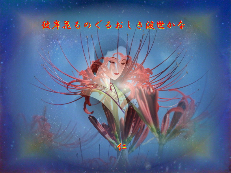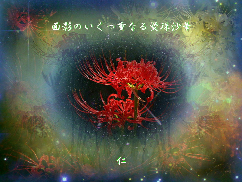 × [PR]上記の広告は3ヶ月以上新規記事投稿のないブログに表示されています。新しい記事を書く事で広告が消えます。 ★ 。・。・゜♪★ 老仁のそのまんま言葉遊び交心日録 ★♪゜・。・。★ ★ 老仁のそのまんま言葉遊び交心日録w12r0821ー25 ――☆★☆―――――――――――――――☆★☆―― 一物のなくも恋いめや酔芙蓉 ――☆★☆―――――――――――――――☆★☆―― 12r0821 老ひてこそ意地も張りたし雲の峰(空呼)☆湧く湧く無心老いの妙味よ 張る意地も老いて角なし雲の峰 笑んでまあるく泣いては死角 吾が口に煩悩在りき大夕焼 黙せど色に零れ出でにき 蚤虱とことん人間好きになる ぎりぎりまでを生きて笑わん 一物のなくも恋いめや酔芙蓉 日に燃えて立つ命の音色 喜ばん空即是色夜の秋 寝ても覚めても夢見るばかり 12r0822 霧の間に灯し見ゆ富士夜明け前 感嘆の声とどろきもまた 万緑の森に吾また森の精 風の囃子に木の葉の唄う 鳥けもの浮かれ踊りし山法師 森に戻ればいのちは一つ 12r0824 息生粋夏が命の閾持ち来 風に流れて夢見の自遊 夏の風おのずといのち顔になる 水は優遊雲は謄謄 12r0825 つやなしのはなしにあきの風とおる はなしを遊ぶつや菩薩あれ 秋風が 吹いているのに 猫の恋(森人)☆恋はいつでもどこ吹く風よ 乞い来い恋風に躍って初黄葉 そぞろごころの色にいでけり ゆずられて深々知りぬ老の秋 ひとはだの羽衣なびく秋の風 無に還る セミも枯れ葉も私も(花人)☆蝉なる吾に歓喜もらいし わたくしも蝉のまねして無に還る 学ぶ標のあふれて在りぬ すっとんとん潟に顔だすむつごろう 泥にまみれぬ身のこなしぶり ★ 。・。・゜♪★ 老仁のそのまんまで交心日録 ★♪゜・。・。★ ★★★ 徒然575交心w12r082901『 回生の標とそよげ彼岸花 』 へどうぞ!!! ★★★ ★★★ 優遊575交心w12r082802『 彼岸花ものぐるおしき渡世かな 』 へどうぞ!!! ★★★ ★ 。・。・゜♪゜・。・。★ リンク ★ 。・。・゜♪゜・。・。★ PR ★ 。・。・゜♪゜・。・。★ 優遊575交心 ★ 。・。・゜♪゜・。・。★ ★ 優遊575交心w12r082802 ――♪♪♪♪―――――――――――――♪♪♪♪―― 彼岸花ものぐるおしき渡世かな ――♪♪♪♪―――――――――――――♪♪♪♪―― フォト575『 面影のいくつ重なる曼珠沙華 』 へ遊呼さんより交心もらいました。<面影>という言葉の持つ力の大きさを感じます。 よくよく考えると、わたしたちは生の半分は「面影」を追って、あるいは負って、生きているのかもしれません。そして「面影」は煩悩を清浄にしてくれる力を持っているようにも感じます。 面影を追えば銀河のはなやぎぬ 仁 赦されて在る銀河の恋よ ★★★ フォト575『 面影のいくつ重なる曼珠沙華 』 へどうぞ!!! ★★★ カミソリをキツネのもてる山路かな 仁 昨日を切りて一会の大事 遊呼さん、交心ありがとうございます。 あらゆるものにいろいろの面影が寄り添いますね。世界は心の映しというけれど、また、記憶の宝箱なのかもしれませんね。あるいは言い換えれば、世界は追憶の糧なのでしょう。 古来人は花鳥風月に念をこめて歌を詠んできました。花鳥風月への人々の念いが重なり合って、心が響き合ったり、伝わったり、交わったりするのでしょうね。 「面影」に乃舞さんを重ねてくださってありがとうございます。 遊呼さんの心に「素敵な女性」として乃舞さんがいてくれることをうれしく思います。一期一会といいますけれど、人はこんな風に人の心の中に残りつづけていくのでしょうね。 ふっと想い出して、しみじみ懐かしくなることいろいろあります。人って、不思議ですね。そして、人って、やっぱり、素敵ですね。 一期一会。生きている今を、もっとやさしくなれればいいのですけれど・・・ キツネノカミソリも彼岸花も群生が多いですね。でもひとつ一つは切ないですね。彼岸花はその立ち姿も色も情を映しやすい花です。 ひとつふたつ草むらに見るキツネノカミソリはマイナーな心根が感じられて凡愚老仁は好きです。 彼岸花ものぐるおしき渡世かな 仁 花を形見の常世遊ばん ★ つけ句あそび交心w12r081803 ――♪♪♪♪―――――――――――――♪♪♪♪―― 面影のいくつ重なる曼珠沙華 ――♪♪♪♪―――――――――――――♪♪♪♪―― > 鷺草の揺れて優しき母の顔 夢呼 心に添いし面影の笑む 仁 ☆☆☆ 夢呼さんの、『 ◆ ハングドラムのとりこになって ◆ 俳句から広がる世界短歌の魅力 ◆ 俳句練習長 』 への交心です。 ★★★ 母を想えば彼岸花がくっついて回り、彼岸花を観れば母を思い浮かべてしまうくらいに二者一体になっているのに気がついたことがあります。今もそうだから、凡愚老仁の中ではずっとそうなんでしょうね。 お母さんの優しい顔は、お父さんの面影に満たされているのでしょうか。 面影といずれが先か曼珠沙華 仁 母には曼珠沙華が一番 面影のいくつ重なる曼珠沙華 仁 野にも海にも母は在りにき ★ 。・。・゜♪゜・。・。★ そのまんま575で